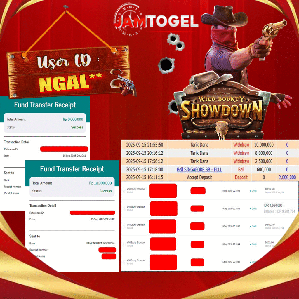 Selamat kepada member setia JAMTOGEL ID NGAL** Telah menang dalam permainan SLOT WILD BOUNTY SHOWDOWN RP 18,000,000, – LUNAS langsung mendarat ke rekening tanpa bertele – tele atau syarat apapun. Kami ucapkan terimakasih telah mempercayakan JAMTOGEL sebagai situs bandar terpercaya yang dijamin aman dikarenakan berapapun kemenangan member pasti LUNAS!