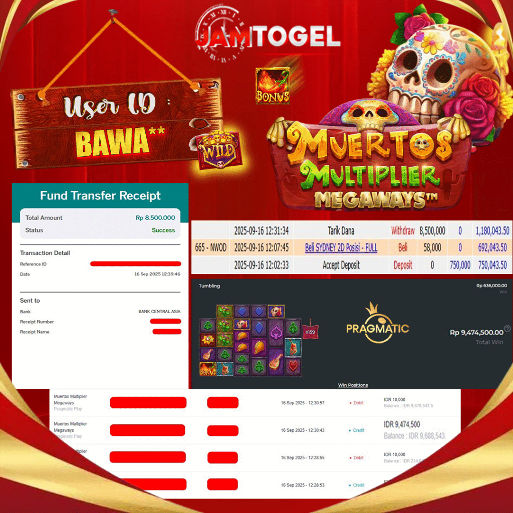 Selamat kepada member setia JAMTOGEL ID MUERTOS MULTIPLIER MEGAWAYS Telah menang dalam permainan SLOT WILD BOUNTY SHOWDOWN RP 8,500,000, – LUNAS langsung mendarat ke rekening tanpa bertele – tele atau syarat apapun. Kami ucapkan terimakasih telah mempercayakan JAMTOGEL sebagai situs bandar terpercaya yang dijamin aman dikarenakan berapapun kemenangan member pasti LUNAS!
