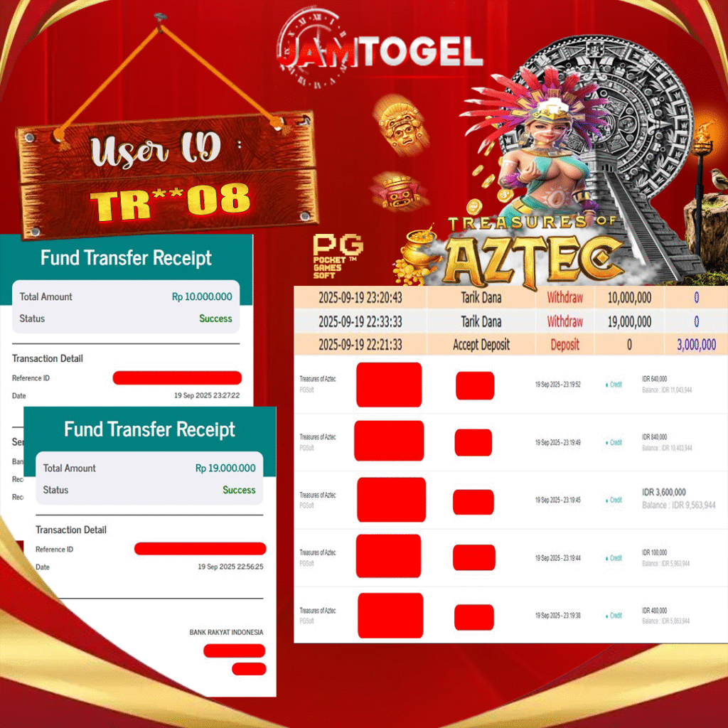 Selamat kepada member setia JAMTOGEL ID TR**08 Telah menang dalam permainan SLOT TREASURES OF AZTEC RP 29,000,000, – LUNAS langsung mendarat ke rekening tanpa bertele – tele atau syarat apapun. Kami ucapkan terimakasih telah mempercayakan JAMTOGEL sebagai situs bandar terpercaya yang dijamin aman dikarenakan berapapun kemenangan member pasti LUNAS!