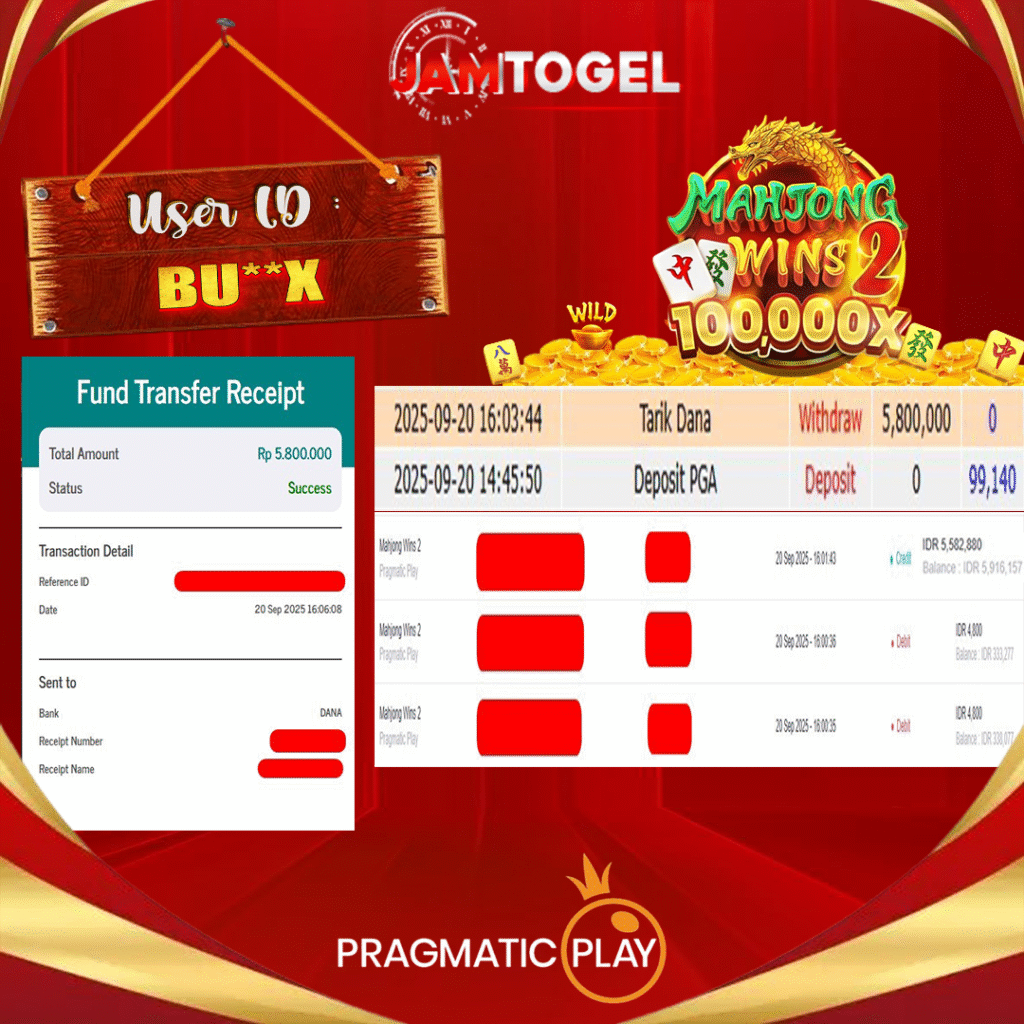 Selamat kepada member setia JAMTOGEL ID BU**X Telah menang dalam permainan SLOT MAHJONG WINS2 RP 5.800,000, – LUNAS langsung mendarat ke rekening tanpa bertele – tele atau syarat apapun. Kami ucapkan terimakasih telah mempercayakan JAMTOGEL sebagai situs bandar terpercaya yang dijamin aman dikarenakan berapapun kemenangan member pasti LUNAS!