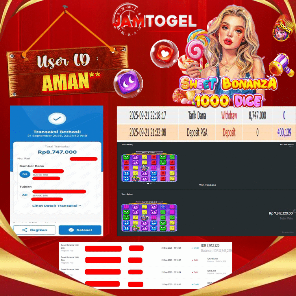 Selamat kepada member setia JAMTOGEL ID AMAN** Telah menang dalam permainan SLOT SWEET BONANZA 1000 DICE RP 8,747,000 – LUNAS langsung mendarat ke rekening tanpa bertele – tele atau syarat apapun. Kami ucapkan terimakasih telah mempercayakan JAMTOGEL sebagai situs bandar terpercaya yang dijamin aman dikarenakan berapapun kemenangan member pasti LUNAS!