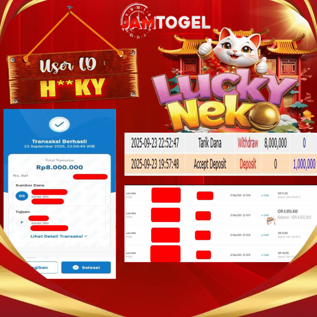 Selamat kepada member setia JAMTOGEL ID H**KY Telah menang dalam permainan SLOT LUCKY NEKO RP 8,000,000, – LUNAS langsung mendarat ke rekening tanpa bertele – tele atau syarat apapun. Kami ucapkan terimakasih telah mempercayakan JAMTOGEL sebagai situs bandar terpercaya yang dijamin aman dikarenakan berapapun kemenangan member pasti LUNAS!
