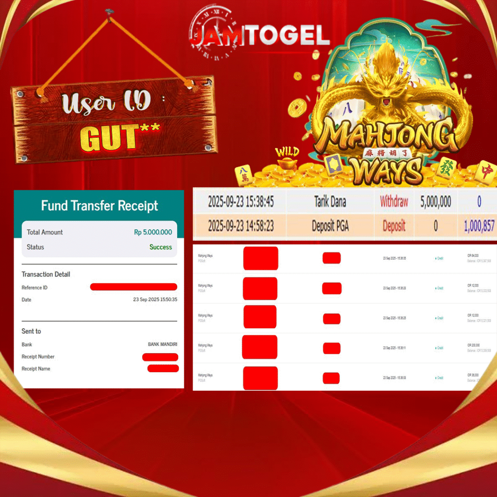 Selamat kepada member setia JAMTOGEL ID GUT** Telah menang dalam permainan SLOT MAHJONG WAYS RP 5.000,000, – LUNAS langsung mendarat ke rekening tanpa bertele – tele atau syarat apapun. Kami ucapkan terimakasih telah mempercayakan JAMTOGEL sebagai situs bandar terpercaya yang dijamin aman dikarenakan berapapun kemenangan member pasti LUNAS!