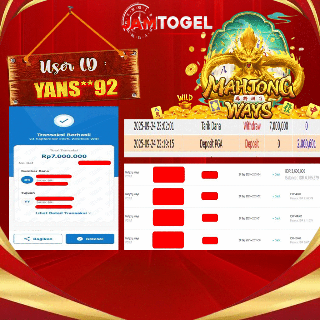 Selamat kepada member setia JAMTOGEL ID YANS**92 Telah menang dalam permainan SLOT MAHJONG WAYS RP 7.000,000, – LUNAS langsung mendarat ke rekening tanpa bertele – tele atau syarat apapun. Kami ucapkan terimakasih telah mempercayakan JAMTOGEL sebagai situs bandar terpercaya yang dijamin aman dikarenakan berapapun kemenangan member pasti LUNAS!