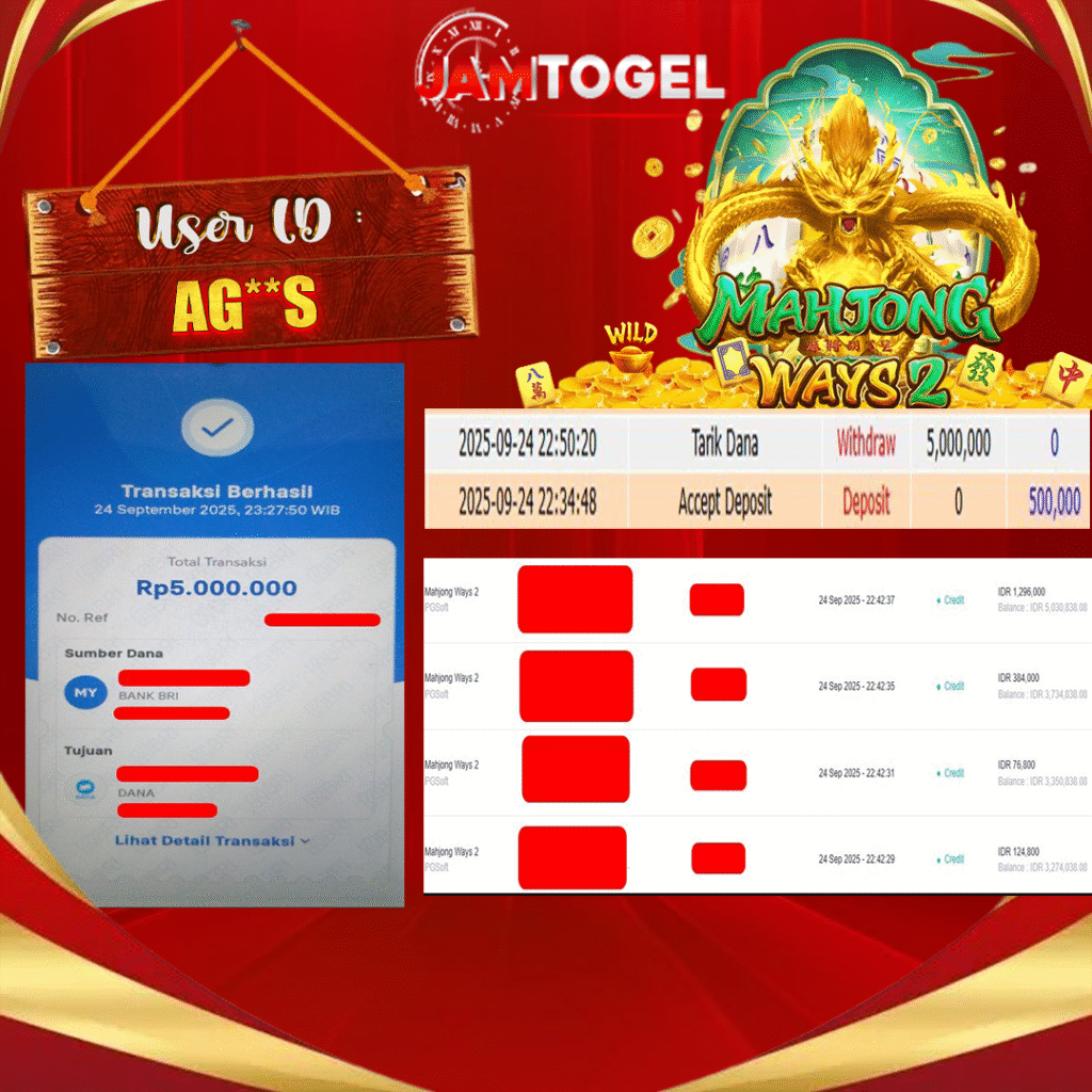 Selamat kepada member setia JAMTOGEL ID AG**S Telah menang dalam permainan SLOT MAHJONG WAYS 2 RP 5.000,000, – LUNAS langsung mendarat ke rekening tanpa bertele – tele atau syarat apapun. Kami ucapkan terimakasih telah mempercayakan JAMTOGEL sebagai situs bandar terpercaya yang dijamin aman dikarenakan berapapun kemenangan member pasti LUNAS!
