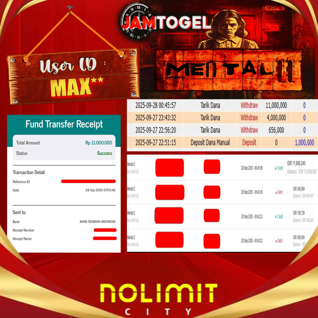 Selamat kepada member setia JAMTOGEL ID MAX** Telah menang dalam permainan SLOT MENTAL 2 RP 11,000,000, – LUNAS langsung mendarat ke rekening tanpa bertele – tele atau syarat apapun. Kami ucapkan terimakasih telah mempercayakan JAMTOGEL sebagai situs bandar terpercaya yang dijamin aman dikarenakan berapapun kemenangan member pasti LUNAS!