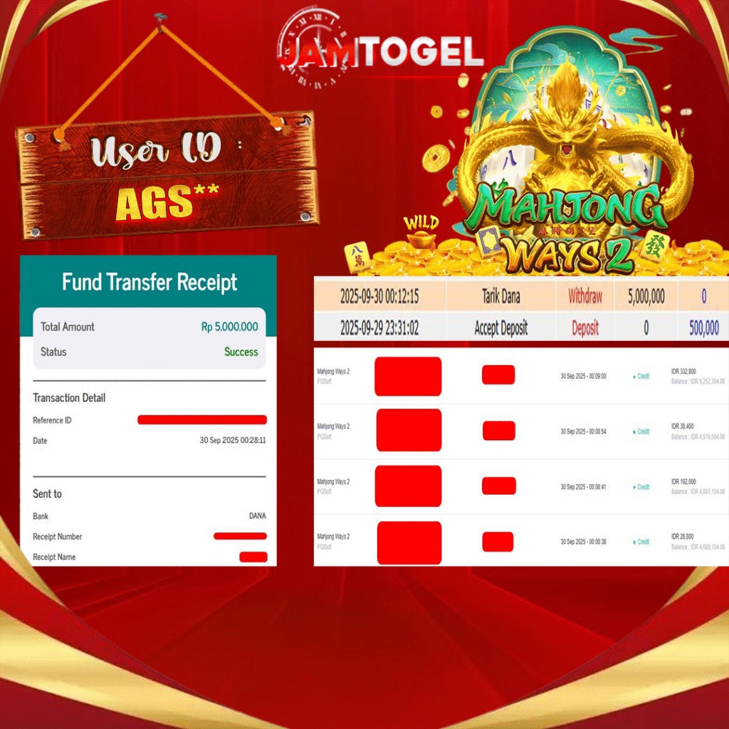 Selamat kepada member setia JAMTOGEL ID AGS**Telah menang dalam permainan SLOT MAHJONG WAYS 2 RP 5.000,000, – LUNAS langsung mendarat ke rekening tanpa bertele – tele atau syarat apapun. Kami ucapkan terimakasih telah mempercayakan JAMTOGEL sebagai situs bandar terpercaya yang dijamin aman dikarenakan berapapun kemenangan member pasti LUNAS!