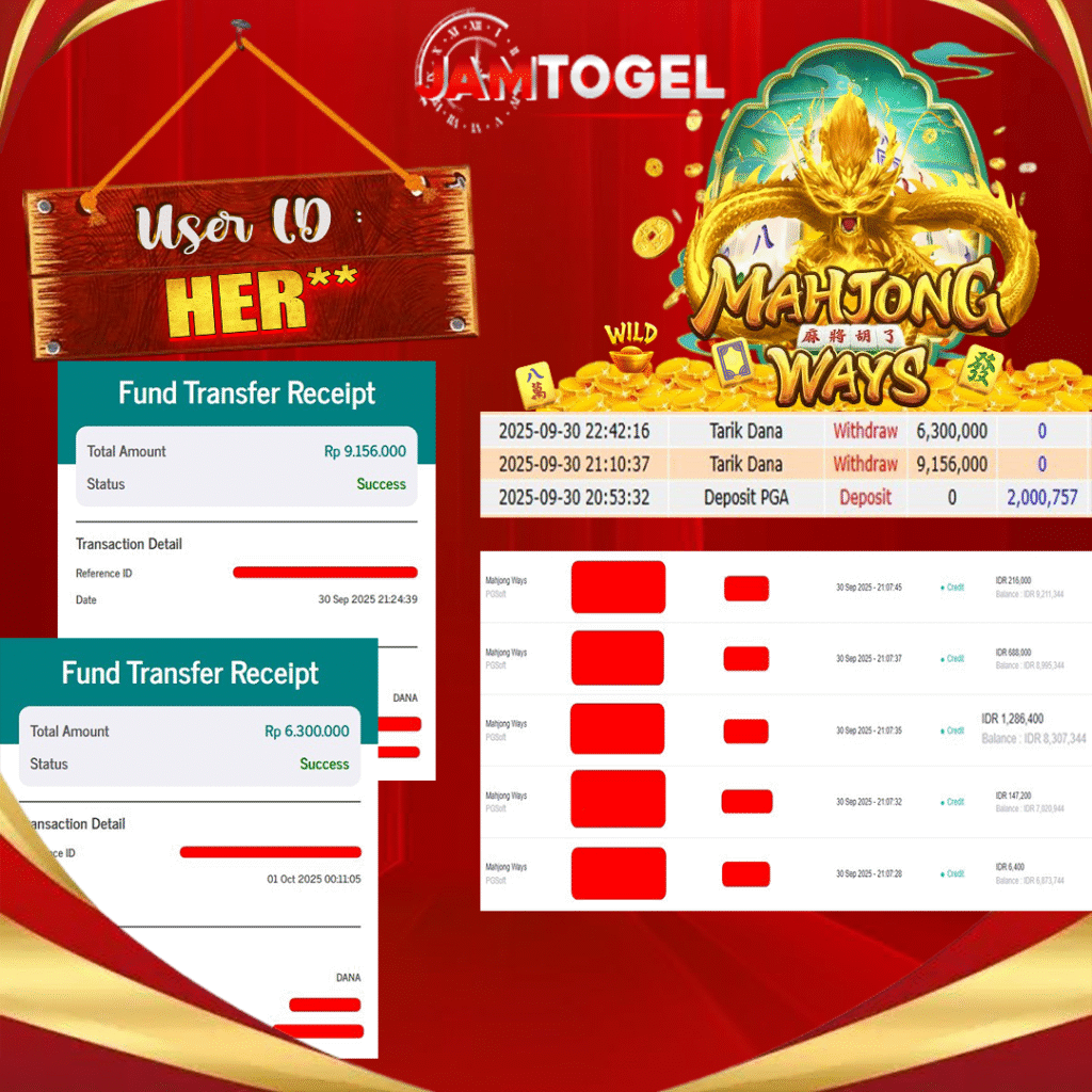 Selamat kepada member setia JAMTOGEL ID HER** Telah menang dalam permainan SLOT MAHJONG WAYS RP 15.456,000, – LUNAS langsung mendarat ke rekening tanpa bertele – tele atau syarat apapun. Kami ucapkan terimakasih telah mempercayakan JAMTOGEL sebagai situs bandar terpercaya yang dijamin aman dikarenakan berapapun kemenangan member pasti LUNAS!