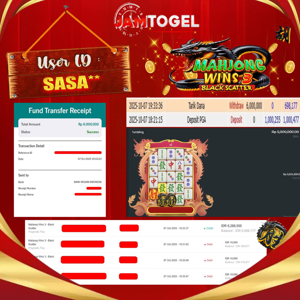 Selamat kepada member setia JAMTOGEL ID SASA** Telah menang dalam permainan SLOT MAHJONG WINS 3 BLACK SCATTER RP 6,000,000, – LUNAS langsung mendarat ke rekening tanpa bertele – tele atau syarat apapun. Kami ucapkan terimakasih telah mempercayakan JAMTOGEL sebagai situs bandar terpercaya yang dijamin aman dikarenakan berapapun kemenangan member pasti LUNAS!