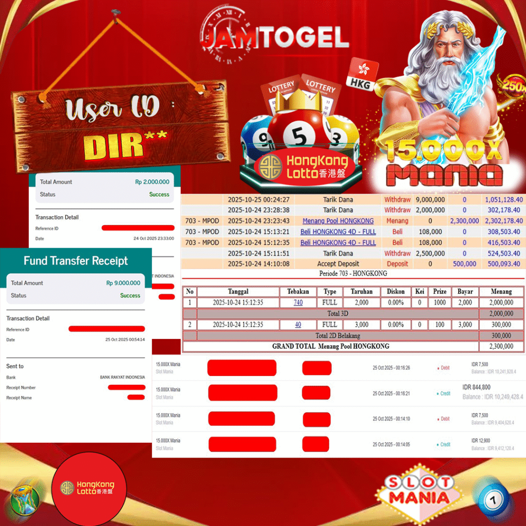 Satu Lagi Kemenangan Spektakuler bulan ini dari Member JAMTOGEL ID DIR**. Kemenangan spektakuler berhasil diraih di SLOT 15.000 MANIA dan Togel Online Hongkong dengan total hadiah sebesar Rp 11.000.000,-. Proses pencairan? Tentu saja langsung masuk ke rekening, cepat, aman, tanpa syarat rumit! Inilah bukti nyata bahwa di JAMTOGEL , kemenangan double kill bisa di raih di JAMTOGEL
