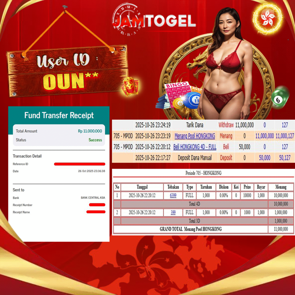 Selamat kepada member setia JAMTOGEL OUN ** Telah menang paus 4d &3d dalam permainan HONGKONG RP 11,000,000, – LUNAS langsung mendarat ke rekening tanpa bertele – tele atau syarat apapun. Kami ucapkan terimakasih telah mempercayakan JAMTOGEL sebagai situs bandar terpercaya yang dijamin aman dikarenakan berapapun kemenangan member pasti LUNAS!