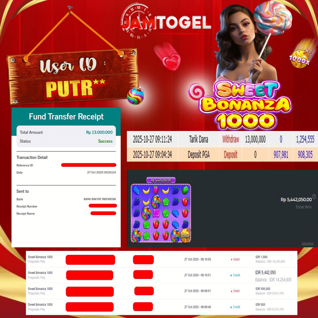 Selamat kepada member setia JAMTOGEL ID PUTR** Telah menang dalam permainan SLOT SWEET BONANZA 1000 RP 13,000,000, – LUNAS langsung mendarat ke rekening tanpa bertele – tele atau syarat apapun. Kami ucapkan terimakasih telah mempercayakan JAMTOGEL sebagai situs bandar terpercaya yang dijamin aman dikarenakan berapapun kemenangan member pasti LUNAS!