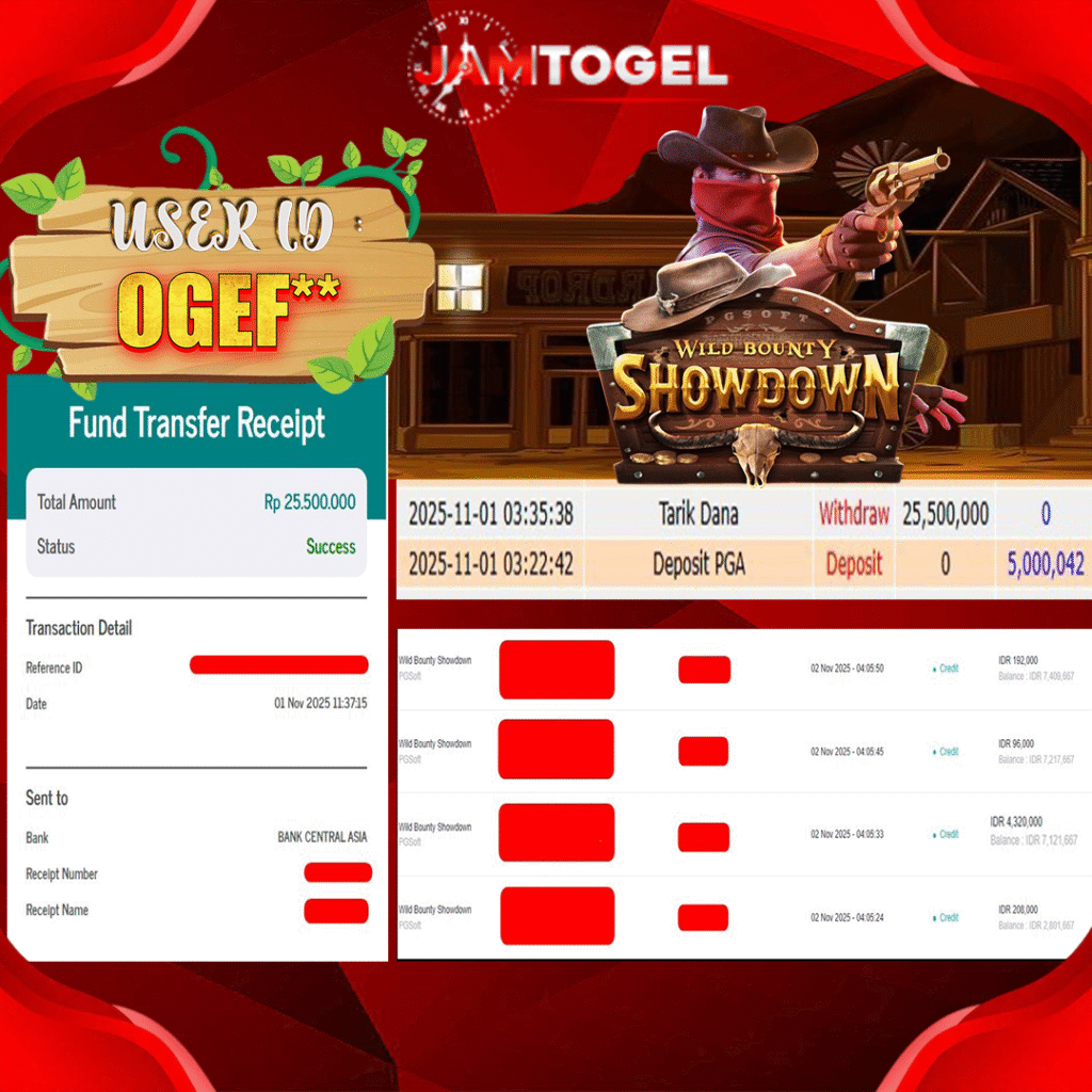 Selamat kepada member setia JAMTOGEL ID OGEF** Telah menang dalam permainan SLOT WILD BOUNTY SHOWDOWN RP 25,500,000, – LUNAS langsung mendarat ke rekening tanpa bertele – tele atau syarat apapun. Kami ucapkan terimakasih telah mempercayakan JAMTOGEL sebagai situs bandar terpercaya yang dijamin aman dikarenakan berapapun kemenangan member pasti LUNAS!
