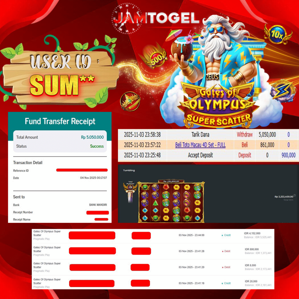 Selamat kepada member setia JAMTOGEL ID SUM** Telah menang dalam permainan SLOT GATE OF OLYMPUS SUPER SCATTER RP 5,050,000 – LUNAS langsung mendarat ke rekening tanpa bertele – tele atau syarat apapun. Kami ucapkan terimakasih telah mempercayakan JAMTOGEL sebagai situs bandar terpercaya yang dijamin aman dikarenakan berapapun kemenangan member pasti LUNAS!