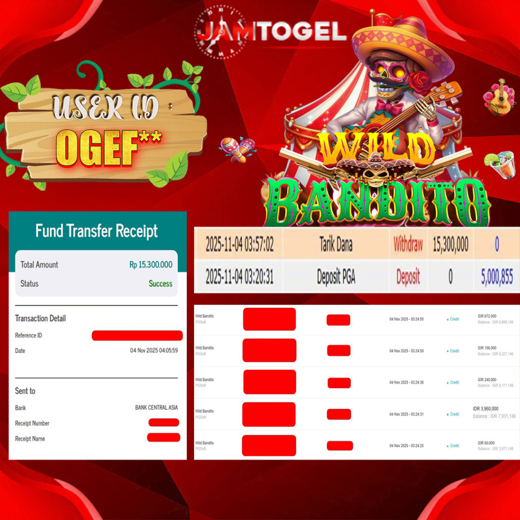 Selamat kepada member setia JAMTOGEL ID OGEF** Telah menang dalam permainan SLOT WILD BANDITO RP 15,300,000, – LUNAS langsung mendarat ke rekening tanpa bertele – tele atau syarat apapun. Kami ucapkan terimakasih telah mempercayakan JAMTOGEL sebagai situs bandar terpercaya yang dijamin aman dikarenakan berapapun kemenangan member pasti LUNAS!
