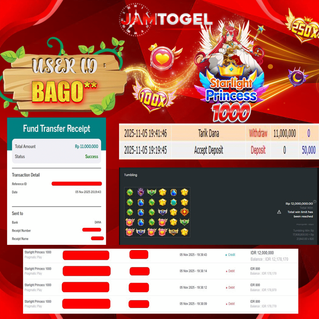 Selamat kepada member setia JAMTOGEL ID BAGO** Telah menang dalam permainan SLOT STARLIGHT PRINCESS 1000 RP 11,000,000, – LUNAS langsung mendarat ke rekening tanpa bertele – tele atau syarat apapun. Kami ucapkan terimakasih telah mempercayakan JAMTOGEL sebagai situs bandar terpercaya yang dijamin aman dikarenakan berapapun kemenangan member pasti LUNAS!