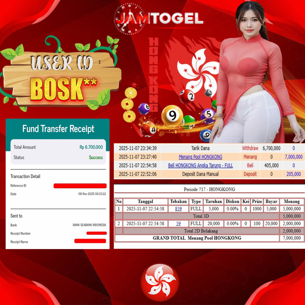 Selamat kepada member setia JAMTOGEL BOSK** Telah menang 3D &2D dalam permainan HONGKONG RP 6,700,000, – LUNAS langsung mendarat ke rekening tanpa bertele – tele atau syarat apapun. Kami ucapkan terimakasih telah mempercayakan JAMTOGEL sebagai situs bandar terpercaya yang dijamin aman dikarenakan berapapun kemenangan member pasti LUNAS!