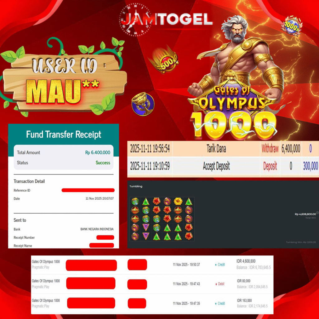 Selamat kepada member setia JAMTOGEL ID MAU**Telah menang dalam permainan SLOT GATE OF OLYMPUS 1000 RP 6,400,000 – LUNAS langsung mendarat ke rekening tanpa bertele – tele atau syarat apapun. Kami ucapkan terimakasih telah mempercayakan JAMTOGEL sebagai situs bandar terpercaya yang dijamin aman dikarenakan berapapun kemenangan member pasti LUNAS!