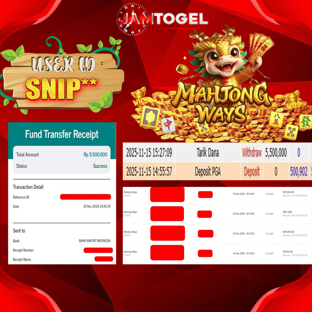 Selamat kepada member setia JAMTOGEL ID SNIP** Telah menang dalam permainan SLOT MAHJONG WAYS RP 5.500,000, – LUNAS langsung mendarat ke rekening tanpa bertele – tele atau syarat apapun. Kami ucapkan terimakasih telah mempercayakan JAMTOGEL sebagai situs bandar terpercaya yang dijamin aman dikarenakan berapapun kemenangan member pasti LUNAS!