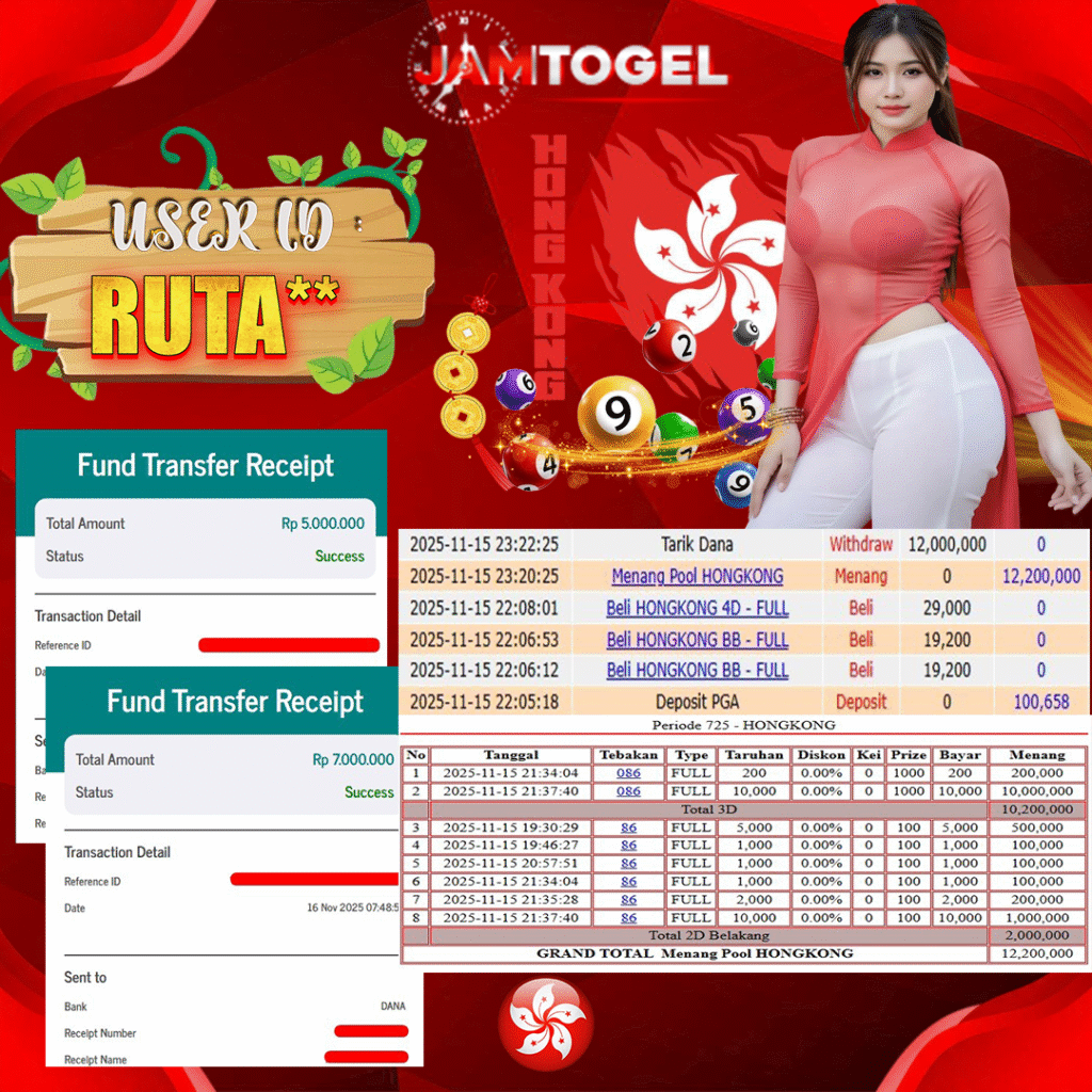 Selamat kepada member setia JAMTOGEL RUTA** Telah menang dalam permainan TOGEL ONLINE HONGKONG RP 12,000,000, – LUNAS langsung mendarat ke rekening tanpa bertele – tele atau syarat apapun. Kami ucapkan terimakasih telah mempercayakan JAMTOGEL sebagai situs bandar terpercaya yang dijamin aman dikarenakan berapapun kemenangan member pasti LUNAS!