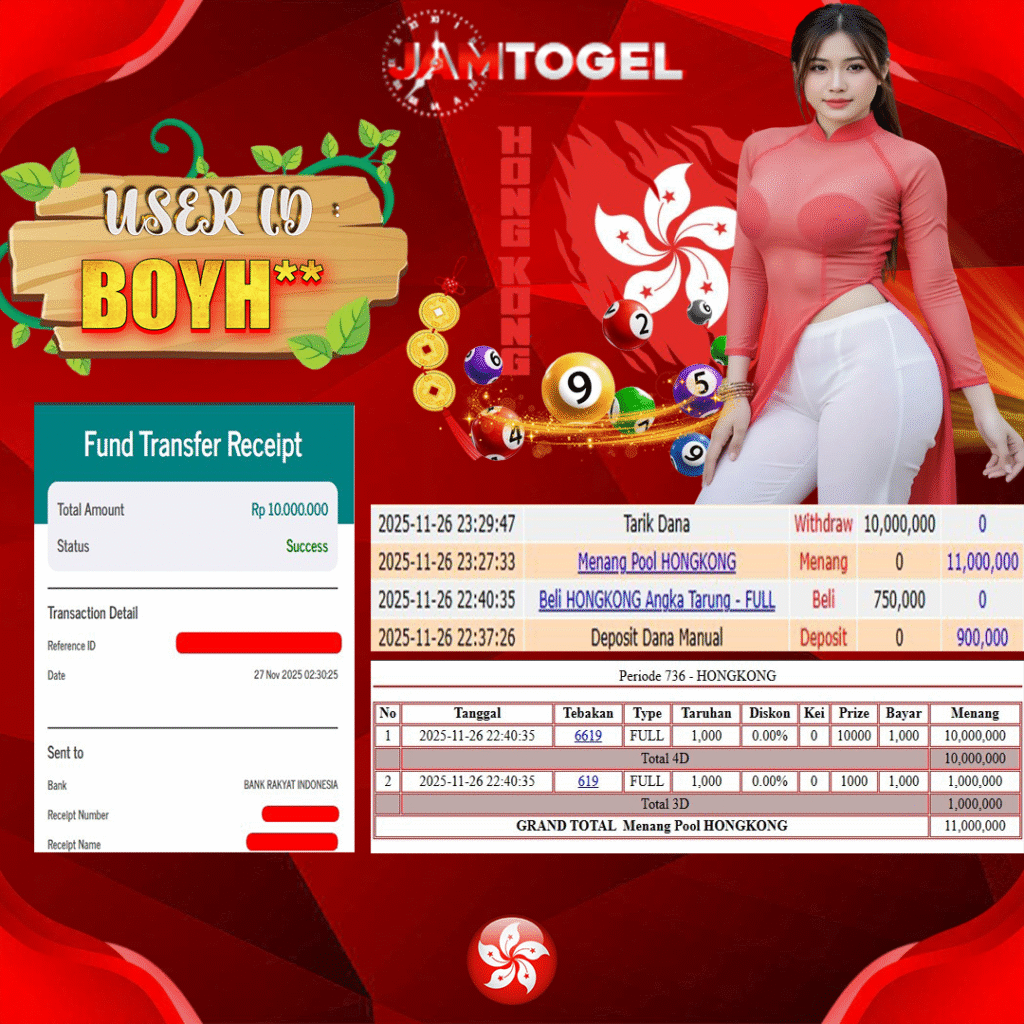 Selamat kepada member setia JAMTOGEL BOYH** Telah menang dalam permainan TOGEL ONLINE HONGKONG RP 10,000,000, – LUNAS langsung mendarat ke rekening tanpa bertele – tele atau syarat apapun. Kami ucapkan terimakasih telah mempercayakan JAMTOGEL sebagai situs bandar terpercaya yang dijamin aman dikarenakan berapapun kemenangan member pasti LUNAS!