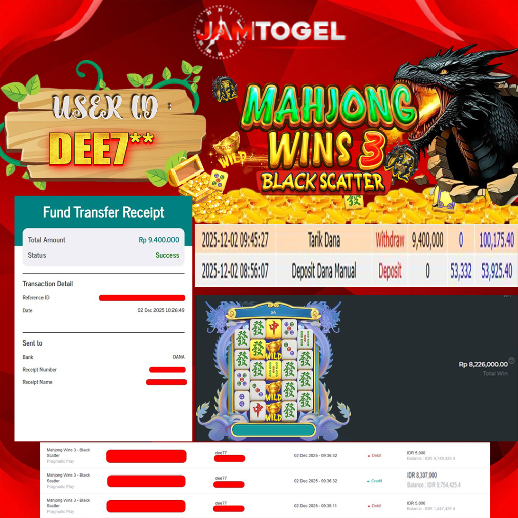 Selamat kepada member setia JAMTOGEL ID DE77** Telah menang dalam permainan SLOT MAHJONG WINS 3 BLACK SCATTER RP 9,400,000, – LUNAS langsung mendarat ke rekening tanpa bertele – tele atau syarat apapun. Kami ucapkan terimakasih telah mempercayakan JAMTOGEL sebagai situs bandar terpercaya yang dijamin aman dikarenakan berapapun kemenangan member pasti LUNAS!