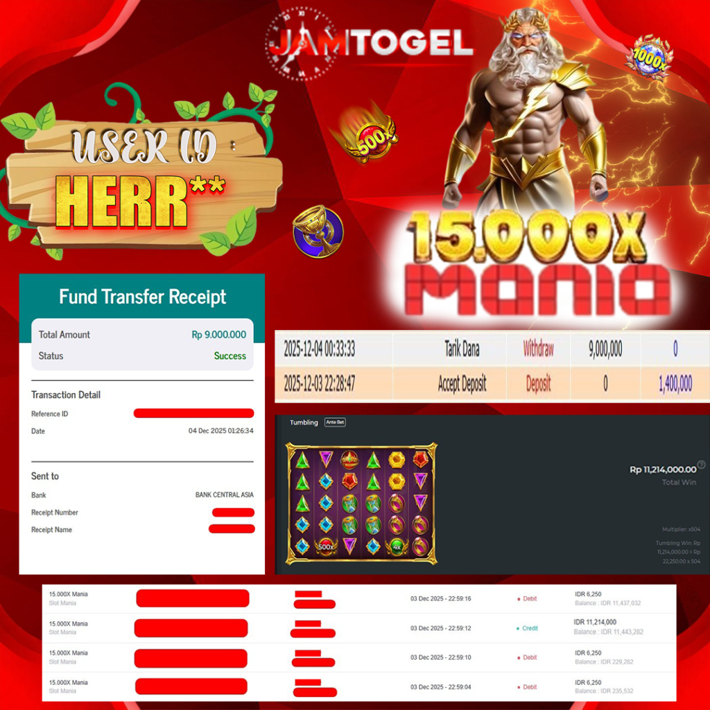 Selamat kepada member setia JAMTOGEL ID HERR** Telah menang dalam permainan SLOT 15.000X MANIA RP 9,000,000, – LUNAS langsung mendarat ke rekening tanpa bertele – tele atau syarat apapun. Kami ucapkan terimakasih telah mempercayakan JAMTOGEL sebagai situs bandar terpercaya yang dijamin aman dikarenakan berapapun kemenangan member pasti LUNAS!