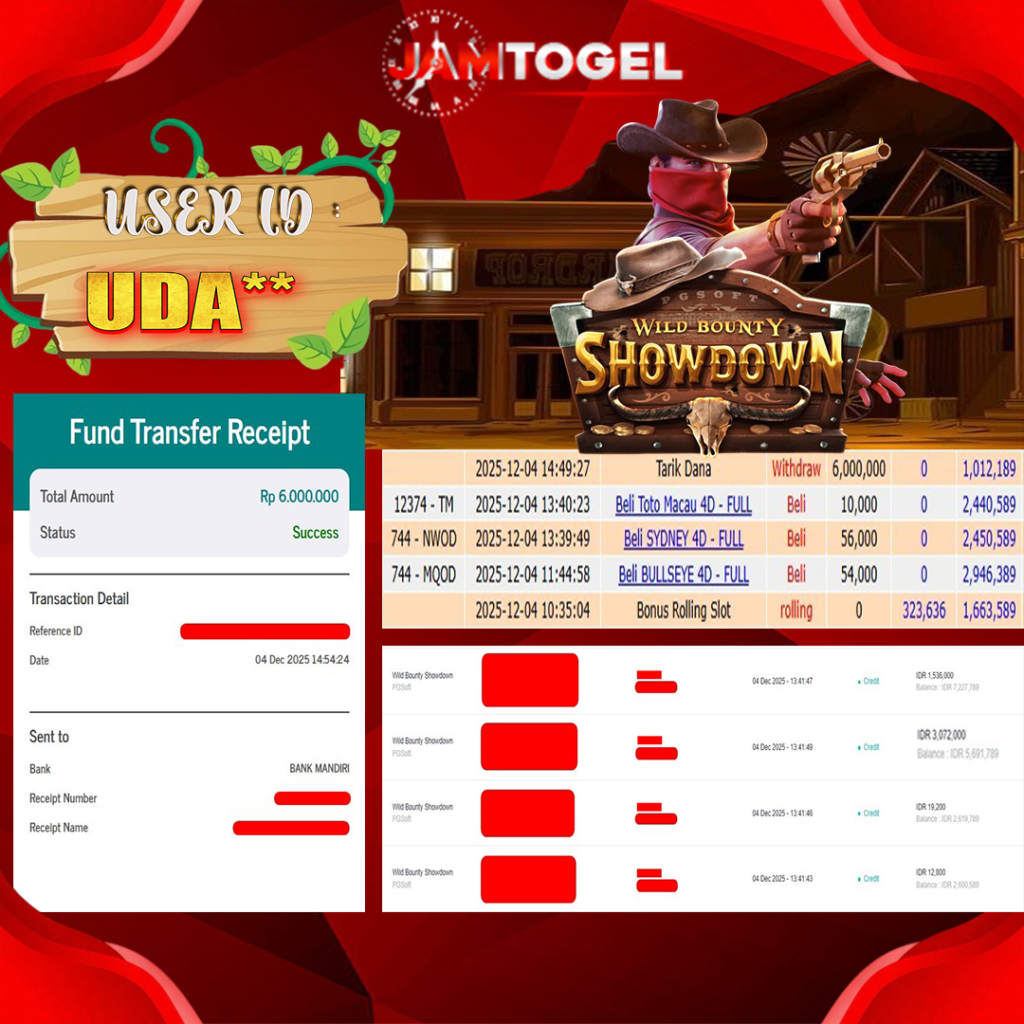 Selamat kepada member setia JAMTOGEL ID UDA** Telah menang dalam permainan SLOT WILD BOUNTY SHOWDOWN RP 6,000,000, – LUNAS langsung mendarat ke rekening tanpa bertele – tele atau syarat apapun. Kami ucapkan terimakasih telah mempercayakan JAMTOGEL sebagai situs bandar terpercaya yang dijamin aman dikarenakan berapapun kemenangan member pasti LUNAS!