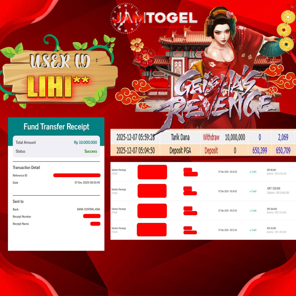 Selamat kepada member setia JAMTOGEL ID LIHI** Telah menang dalam permainan SLOT GEISHA’S REVENGE RP 10,000,000, – LUNAS langsung mendarat ke rekening tanpa bertele – tele atau syarat apapun. Kami ucapkan terimakasih telah mempercayakan JAMTOGEL sebagai situs bandar terpercaya yang dijamin aman dikarenakan berapapun kemenangan member pasti LUNAS!