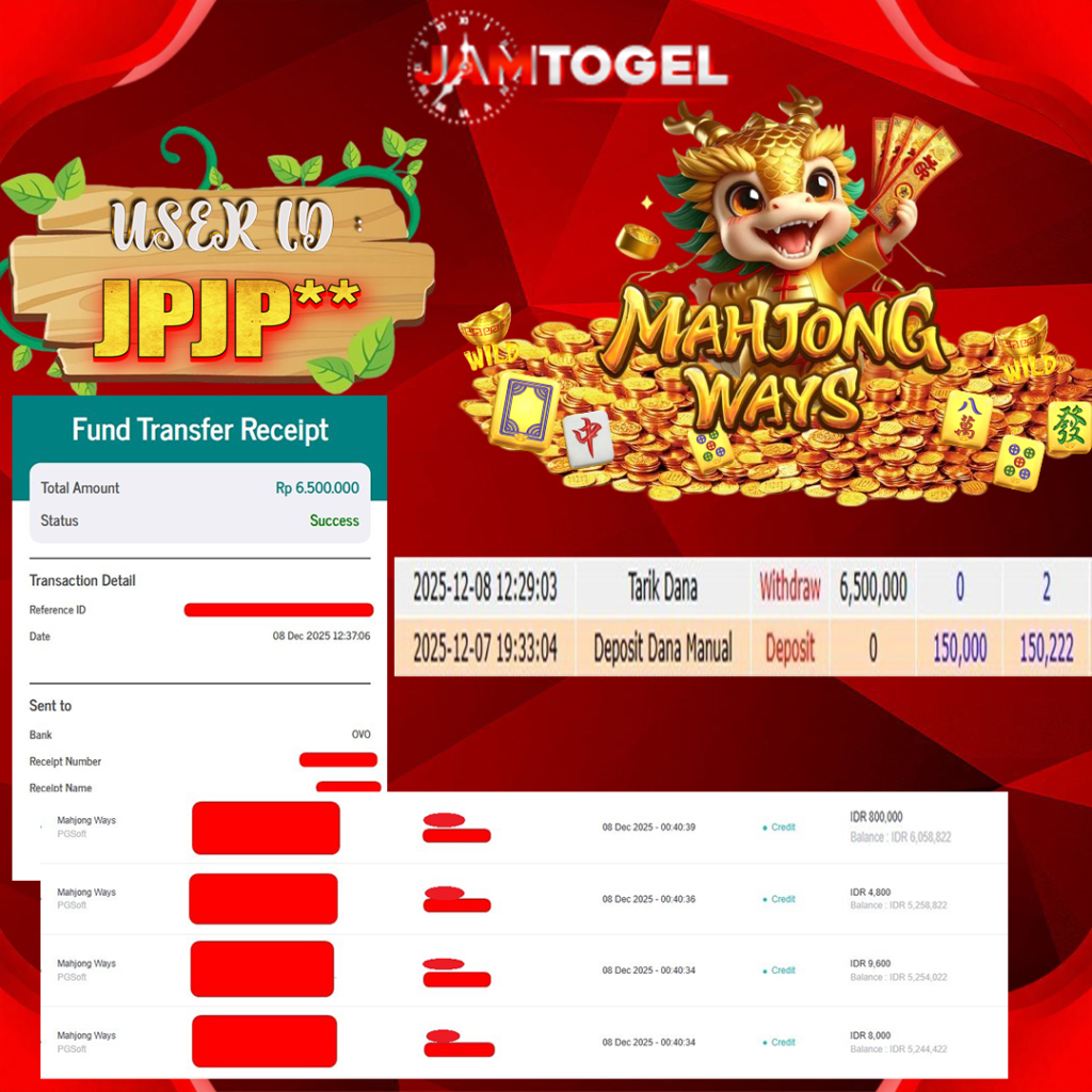 Selamat kepada member setia JAMTOGEL ID JPJP** Telah menang dalam permainan SLOT MAHJONG WAYS 1 RP 5.000,000, – LUNAS langsung mendarat ke rekening tanpa bertele – tele atau syarat apapun. Kami ucapkan terimakasih telah mempercayakan JAMTOGEL sebagai situs bandar terpercaya yang dijamin aman dikarenakan berapapun kemenangan member pasti LUNAS!