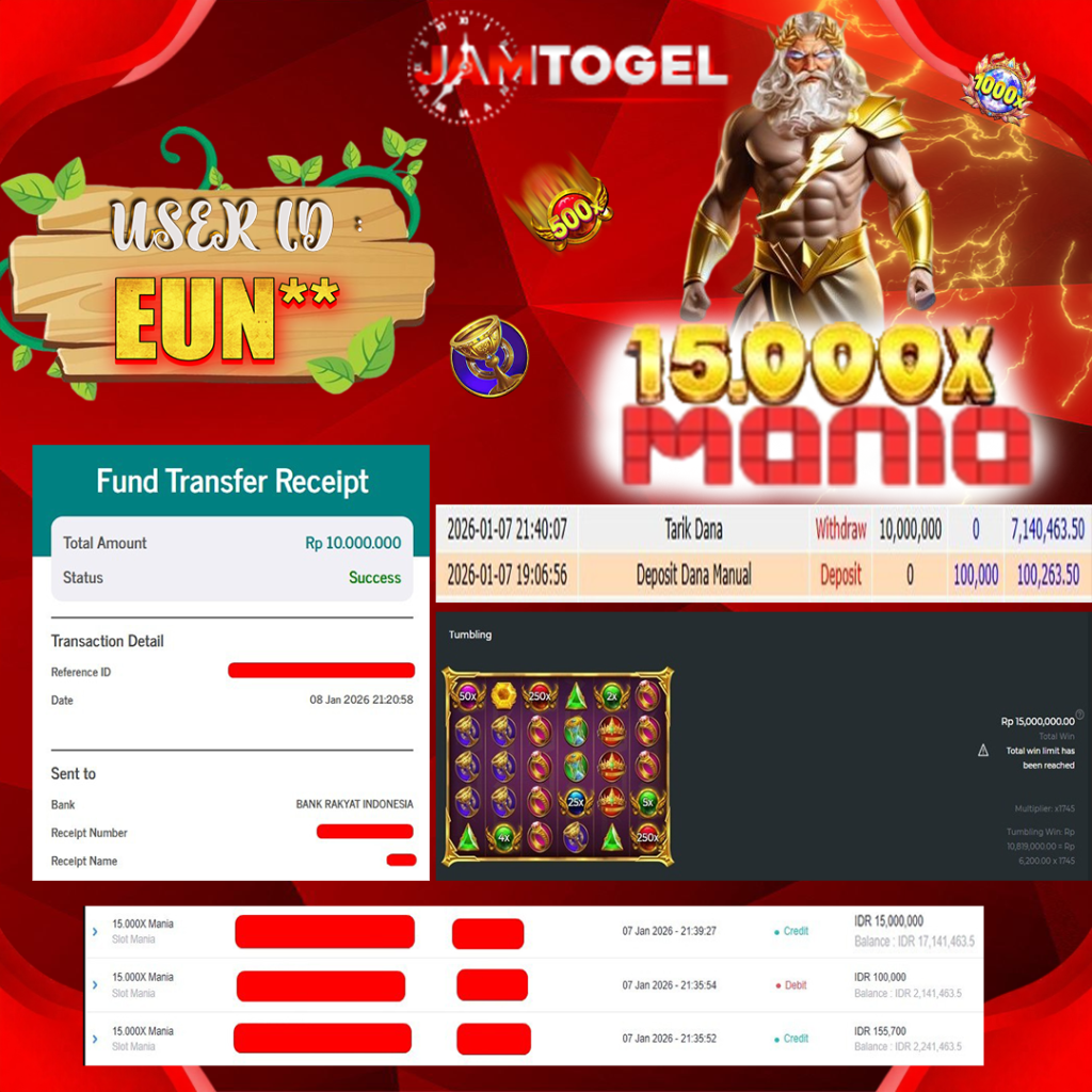 Selamat kepada member setia JAMTOGEL ID EUN** Telah menang dalam permainan SLOT 15.000X MANIA RP 10,000,000, – LUNAS langsung mendarat ke rekening tanpa bertele – tele atau syarat apapun. Kami ucapkan terimakasih telah mempercayakan JAMTOGEL sebagai situs bandar terpercaya yang dijamin aman dikarenakan berapapun kemenangan member pasti LUNAS!
