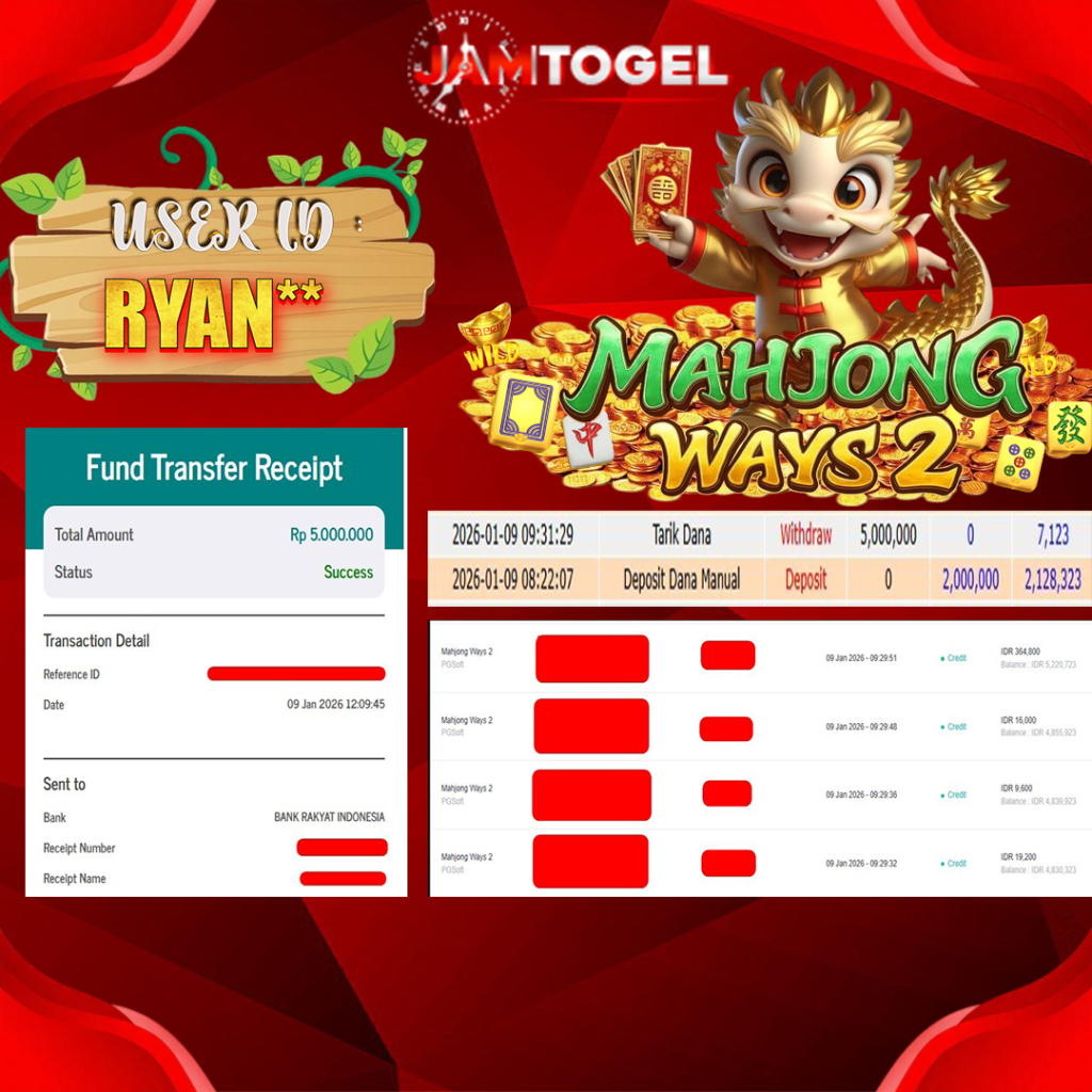 Selamat kepada member setia JAMTOGEL ID RYAN** Telah menang dalam permainan SLOT MAHJONG WAYS 2 RP 5.000,000, – LUNAS langsung mendarat ke rekening tanpa bertele – tele atau syarat apapun. Kami ucapkan terimakasih telah mempercayakan JAMTOGEL sebagai situs bandar terpercaya yang dijamin aman dikarenakan berapapun kemenangan member pasti LUNAS!