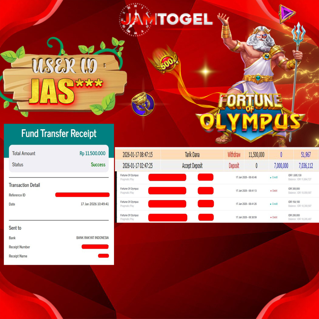 Selamat kepada member setia JAMTOGEL ID JAS** Telah menang dalam permainan SLOT FORTUNE OF OLYMPUS 1000 RP 11,500,000 – LUNAS langsung mendarat ke rekening tanpa bertele – tele atau syarat apapun. Kami ucapkan terimakasih telah mempercayakan JAMTOGEL sebagai situs bandar terpercaya yang dijamin aman dikarenakan berapapun kemenangan member pasti LUNAS!