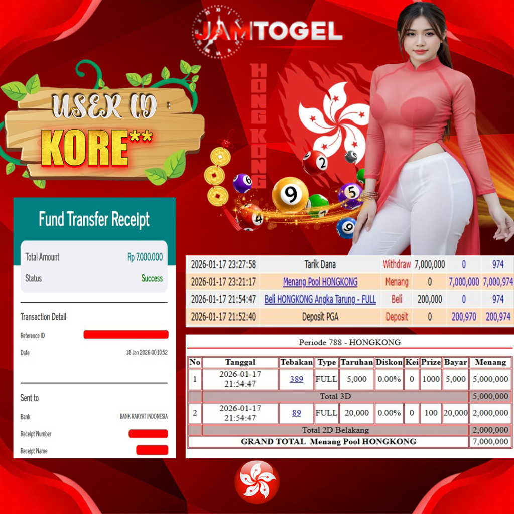 Selamat kepada member setia JAMTOGEL KORE** Telah menang dalam permainan TOGEL ONLINE HONGKONG RP 7,000,000, – LUNAS langsung mendarat ke rekening tanpa bertele – tele atau syarat apapun. Kami ucapkan terimakasih telah mempercayakan JAMTOGEL sebagai situs bandar terpercaya yang dijamin aman dikarenakan berapapun kemenangan member pasti LUNAS!