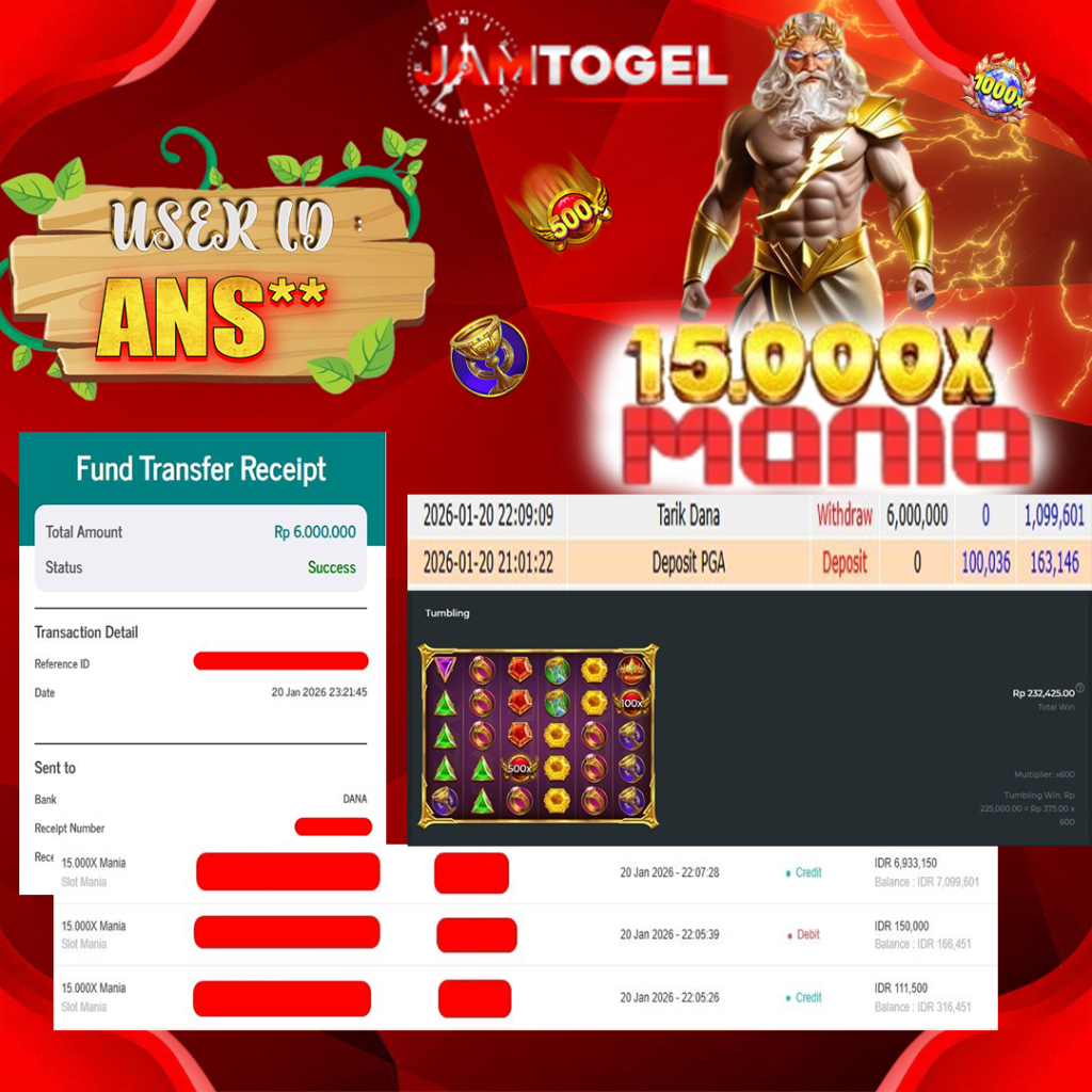 Selamat kepada member setia JAMTOGEL ID ANS** Telah menang dalam permainan SLOT 15.000X MANIA RP 6,000,000, – LUNAS langsung mendarat ke rekening tanpa bertele – tele atau syarat apapun. Kami ucapkan terimakasih telah mempercayakan JAMTOGEL sebagai situs bandar terpercaya yang dijamin aman dikarenakan berapapun kemenangan member pasti LUNAS!