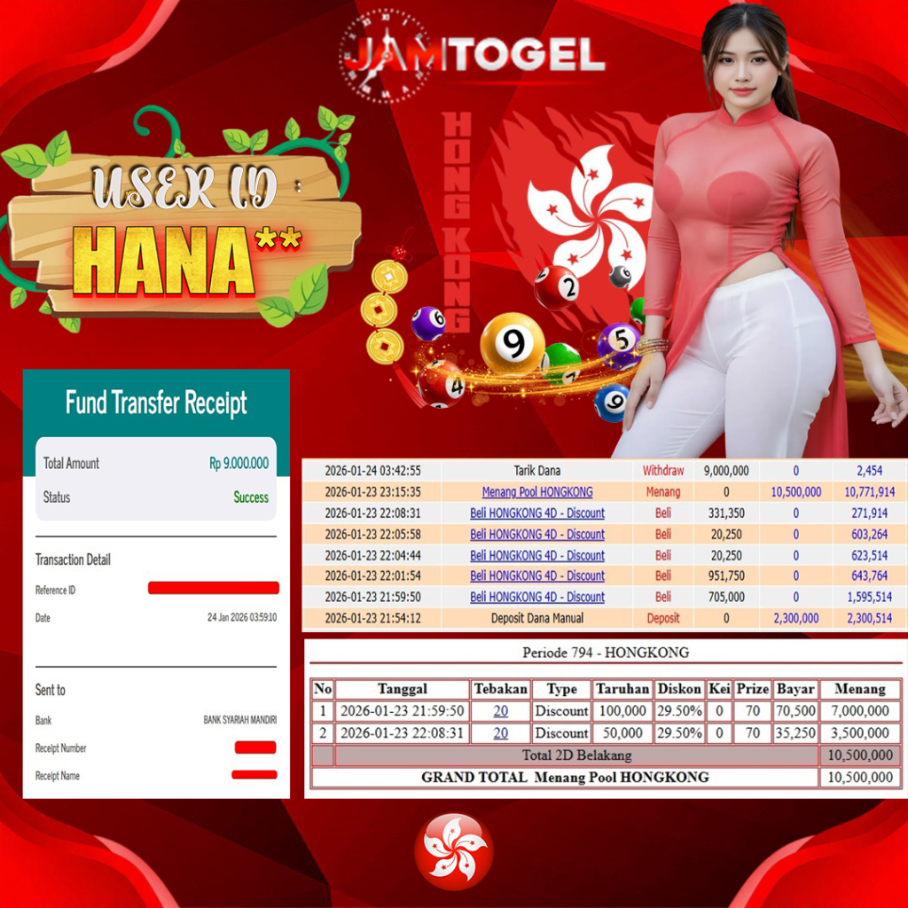 Selamat kepada member setia JAMTOGEL HANA** Telah menang dalam permainan TOGEL ONLINE HONGKONG RP 9,000,000, – LUNAS langsung mendarat ke rekening tanpa bertele – tele atau syarat apapun. Kami ucapkan terimakasih telah mempercayakan JAMTOGEL sebagai situs bandar terpercaya yang dijamin aman dikarenakan berapapun kemenangan member pasti LUNAS!