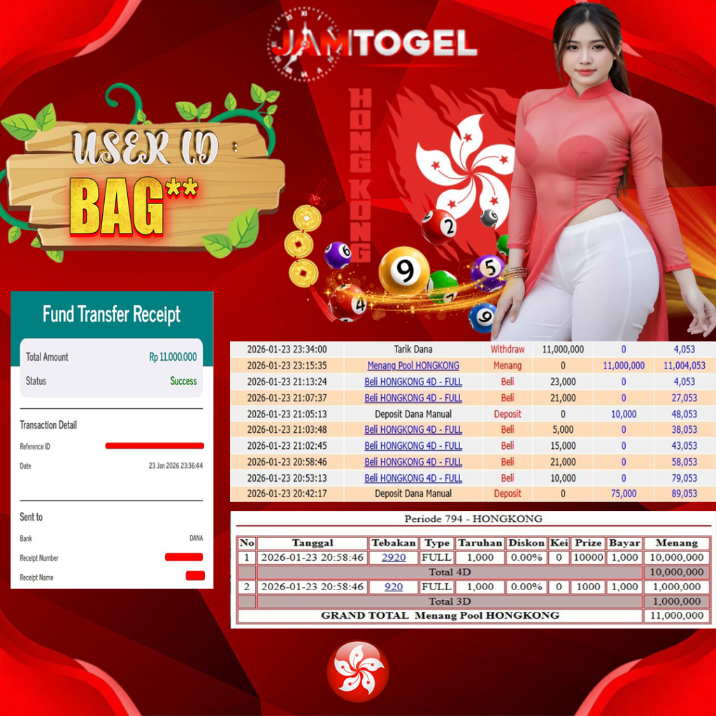 Selamat kepada member setia JAMTOGEL BAG** Telah menang dalam permainan TOGEL ONLINE HONGKONG RP 11,000,000, – LUNAS langsung mendarat ke rekening tanpa bertele – tele atau syarat apapun. Kami ucapkan terimakasih telah mempercayakan JAMTOGEL sebagai situs bandar terpercaya yang dijamin aman dikarenakan berapapun kemenangan member pasti LUNAS!
