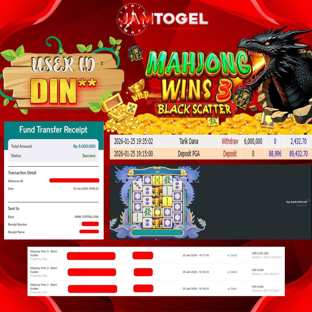Selamat kepada member setia JAMTOGEL ID DIN** Telah menang dalam permainan SLOT MAHJONG WINS 3 BLACK SCATTER RP 6,000,000, – LUNAS langsung mendarat ke rekening tanpa bertele – tele atau syarat apapun. Kami ucapkan terimakasih telah mempercayakan JAMTOGEL sebagai situs bandar terpercaya yang dijamin aman dikarenakan berapapun kemenangan member pasti LUNAS!