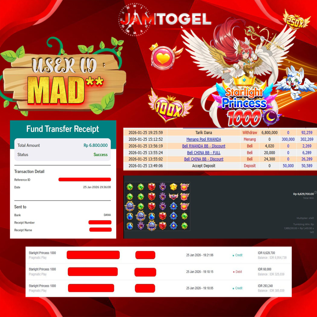 Selamat kepada member setia JAMTOGEL ID KEMAR** Telah menang dalam permainan SLOT STARLIGHT PRINCESS 1000 RP 6,800,000, – LUNAS langsung mendarat ke rekening tanpa bertele – tele atau syarat apapun. Kami ucapkan terimakasih telah mempercayakan JAMTOGEL sebagai situs bandar terpercaya yang dijamin aman dikarenakan berapapun kemenangan member pasti LUNAS!