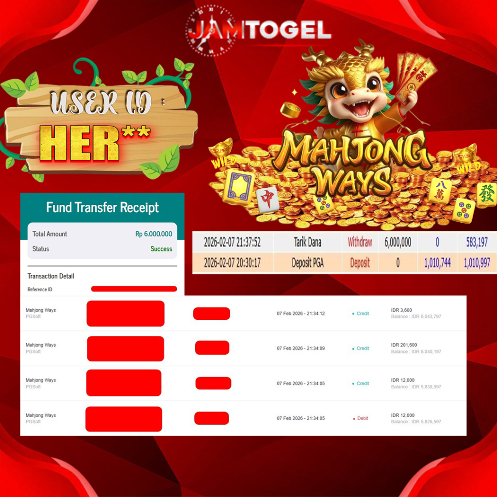 Selamat kepada member setia JAMTOGEL ID HER** Telah menang dalam permainan SLOT MAHJONG WAYS RP 6.000,000, – LUNAS langsung mendarat ke rekening tanpa bertele – tele atau syarat apapun. Kami ucapkan terimakasih telah mempercayakan JAMTOGEL sebagai situs bandar terpercaya yang dijamin aman dikarenakan berapapun kemenangan member pasti LUNAS!