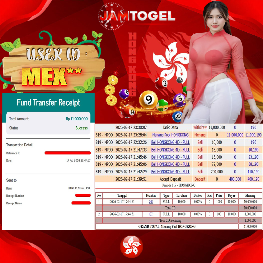 Selamat kepada member setia JAMTOGEL MEX** Telah menang dalam permainan TOGEL ONLINE HONGKONG RP 11,000,000, – LUNAS langsung mendarat ke rekening tanpa bertele – tele atau syarat apapun. Kami ucapkan terimakasih telah mempercayakan JAMTOGEL sebagai situs bandar terpercaya yang dijamin aman dikarenakan berapapun kemenangan member pasti LUNAS!